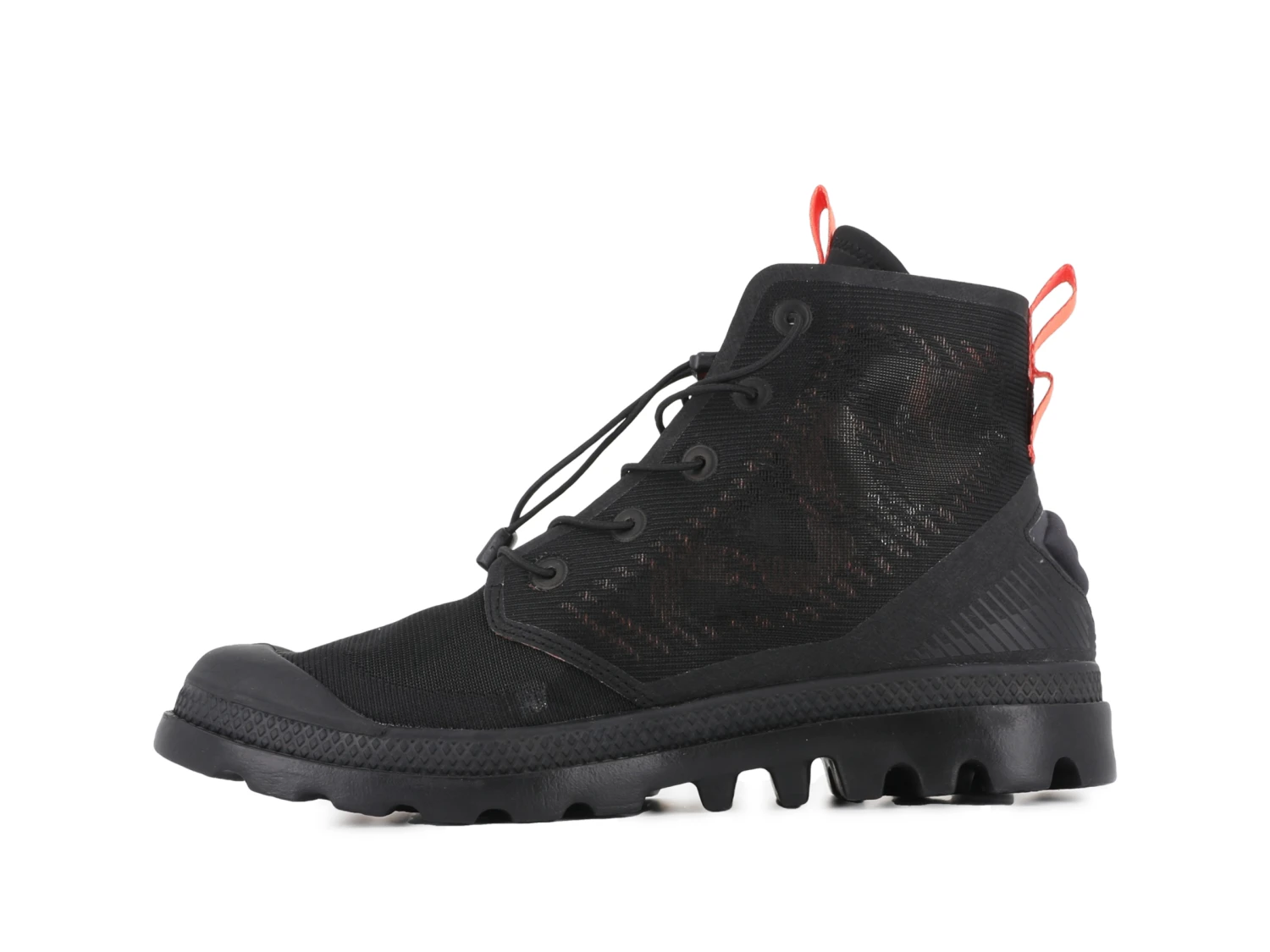 - FEATURES: elastic lace with toggle, hot melt TPU eyelets, tongue and heel webbing loop, deboss on heel